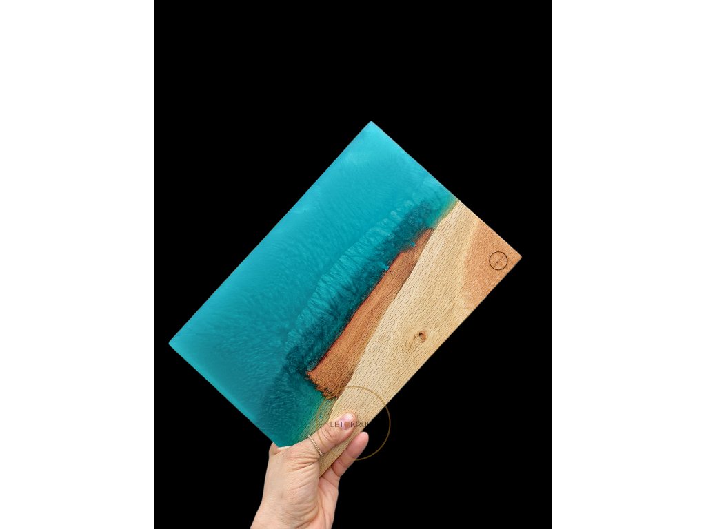 - Epoxid je certifikovaný na styk s potravinami. I přesto se jedná o plast, který se může při krájení uvolňovat. Dbáte-li na non-toxic domácnost, doporučujeme používat na krájení čistě dřevěná prkénka a epoxidová využívejte k servírování.