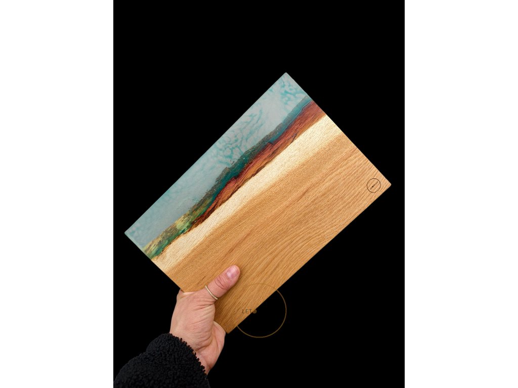 Naše prkénko, v němž se snoubí krása dřeva a průzračně zeleného epoxidu, vám přináší tento pocit klidu přímo do vaší kuchyně.