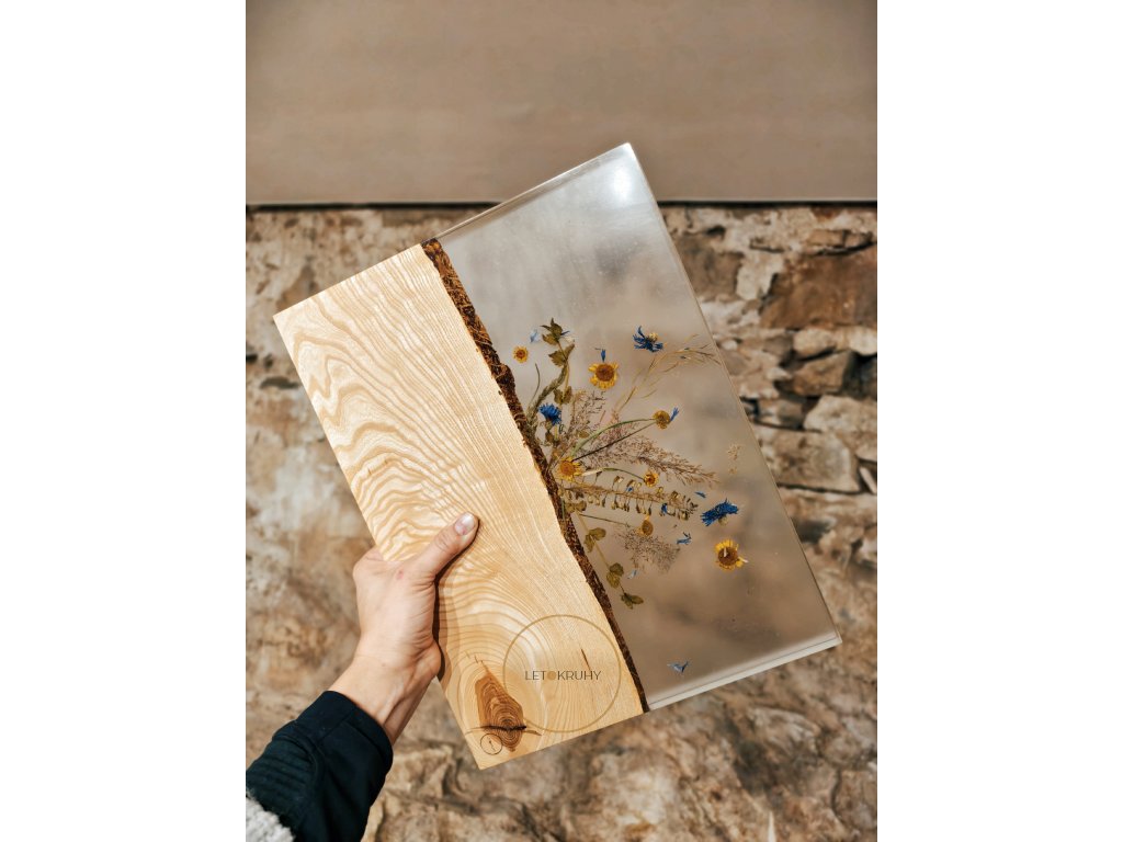 Krájecí a servírovací květinové prkénko s variací lučních květin. V kombinaci s dubovým dřevem a průhledným epoxidem tvoří dokonalé kombo. Skvělý dárek, který padne každému, kdo má rád přírodu a design.